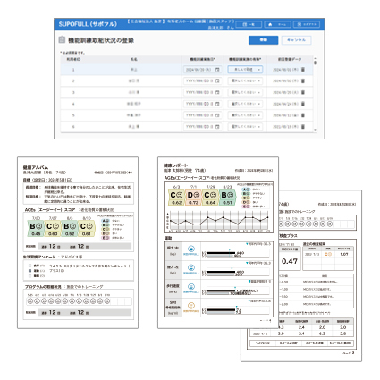 - ご利用者・ご家族、施設職員(機能訓練指導員、看護師、介護職員、生活相談員等)への情報共有レポート