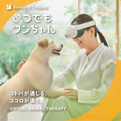 Mixed Reality技術を活用しVRゴーグルを通じて、まるで本物の犬や猫とふれあっているような体験を提供するインタラクティブ・アニマルセラピーです。「人手不足により、日常的なケアで手一杯。心のケアまで手が回らない。」という声から、高齢者の「心のケア」を可能にする新たな製品です。笑顔や会話の増加、情緒安定などの効果が期待されており、手先の軽い運動、運動の動機付けにもご使用いただけます。